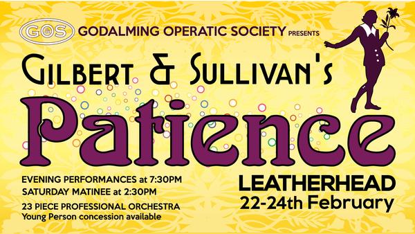 Gilbert & Sullivan’s whimsical & witty satire on the aesthetic movement of the 19th Century, ‘Patience’. Two poets, Bunthorne and Grosvenor, are rivals for the affections of the innocent milkmaid, Patience. A phalanx of fashionably love-sick maidens and their former paramours; a Duke, a Colonel and a Major, with a regiment of officers of the Dragoon Guards, completes the picture and sets the stage for the ensuing topsy-turvy action. Godalming Operatic Society